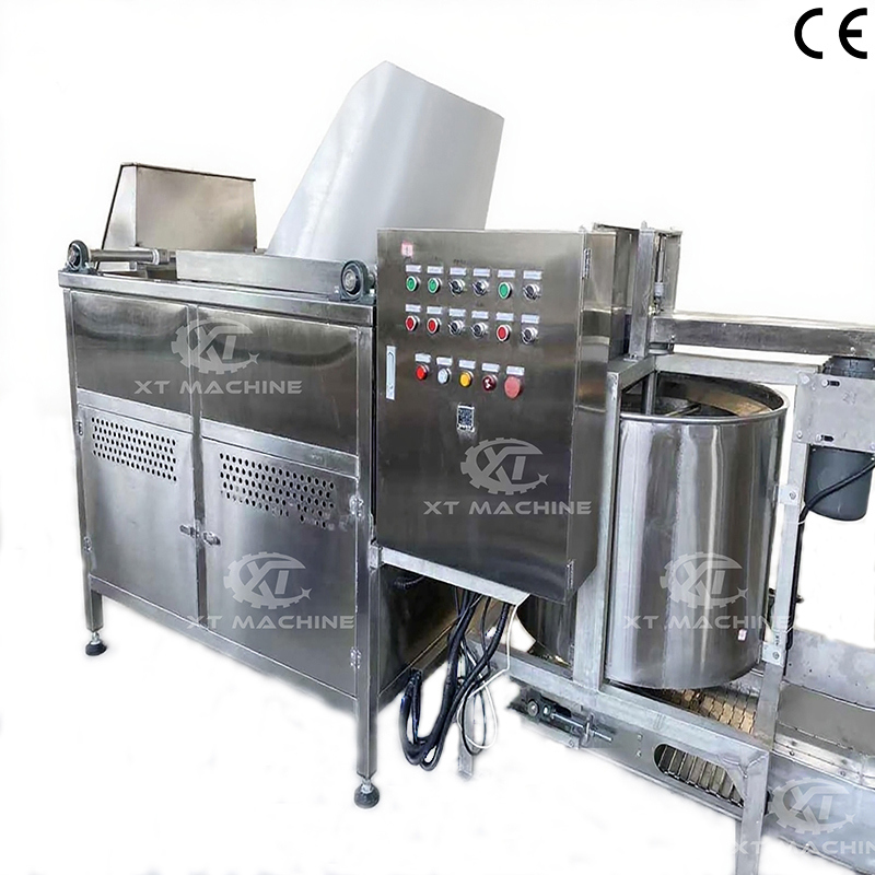 Vente directe d'usine friteuse de lot de cacahuètes à décharge automatique, cacahuètes enrobées de poudre, amandes, haricots, machine à frire les noix