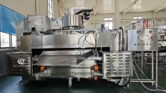 Le grilleur oscillant/grilleur plat et rotatif, également connu sous le nom de grilleur d'arachides enrobées ou de grilleur de haricots japonais, est conçu pour cuire les arachides enrobées aromatisées, les graines de tournesol, les noix de cajou, les amandes, les noix, les noisettes, les pistaches, les pignons de pin, et plus encore. La machine est dotée d'un plateau plat qui tourne horizontalement pendant le fonctionnement, assurant que les noix enrobées sont chauffées uniformément pour des résultats de torréfaction optimaux.